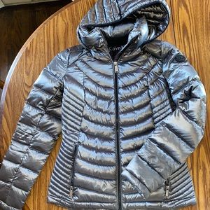Calvin Klein lightweight down jacket, silver gray, size small and never worn