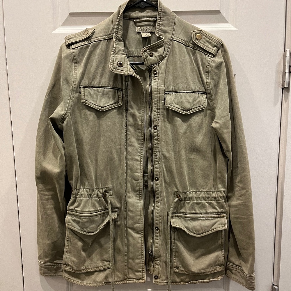 Army green utility jacket, drawstring waist, 4 pockets, 100% cotton. Lucky brand. Size small. Worn twice.
