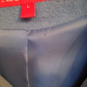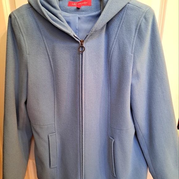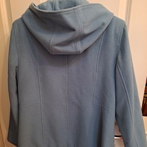 pretty blule wool hooded jacket with zipper hip lenth.