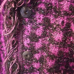 chater club cashmere luxury jacket. metallic thread with purple and black 100% cashmere short
