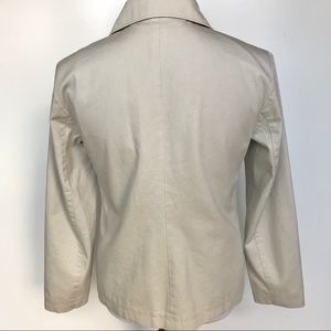 🌿Sleek and simple lines, this Gap light kaki, zippered ladies jacket is in like new condition, with pockets that are still sewn closed. 100%cotton, fully lined in 100% polyester. Machine washable. •19”Bust. •18”Waist.