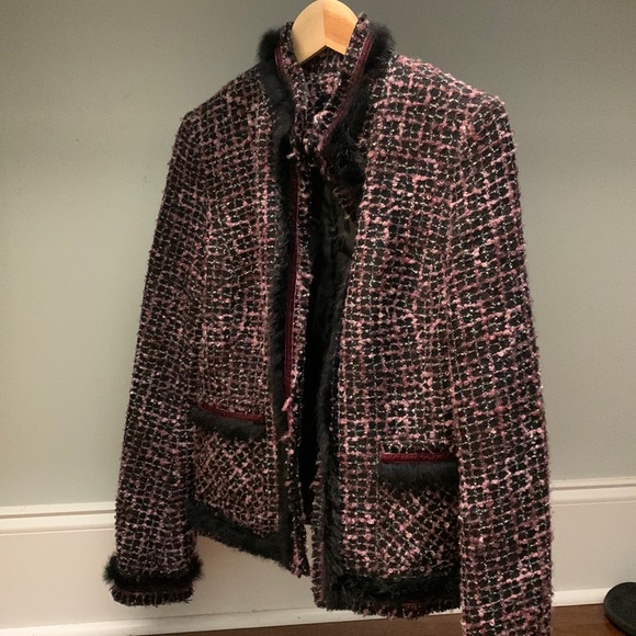 Black, pink, burgundy jacket with velvet and fur trim, size 4