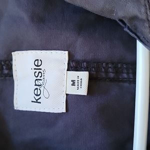 In used condition. No rips or stains. Has a washed/faded look. There are 2 front and 2 side pockets. Zippens and buttons in front.