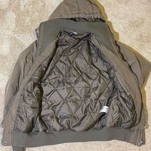 Stylish mens jacket. In good conditions, and used a few times. There are no rips or stain on it. It is a S size but it runs big