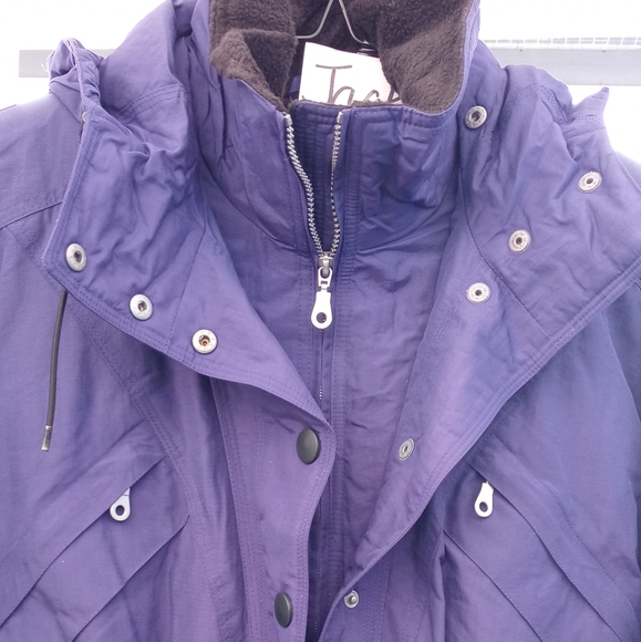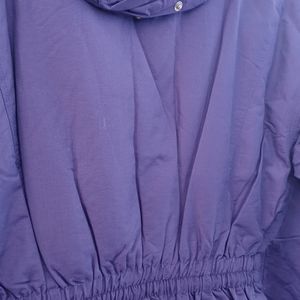 Women hooded purple jacket. lines on the inside to keep you warm. Hood with adjust draw string to keep the cold away.