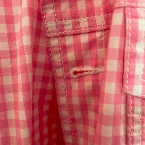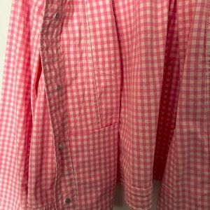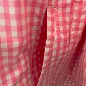 Button down two slide pocket on the side,two pocket top,two pocket inside.Wear only once .