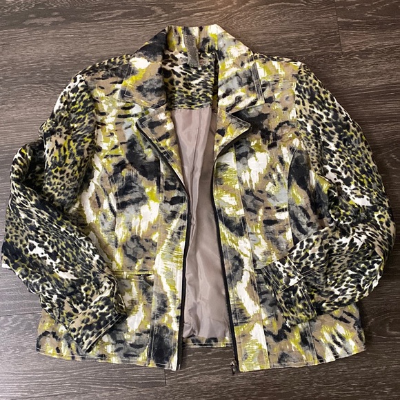 Print size 14 never worn jacket with zipper and zipper on the pockets