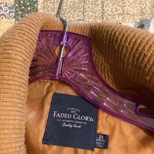 Goldish brown faux leather ladies bomber style jacket. Fully lined. A cross between Amelia Earhart and a motorcycle jacket!!