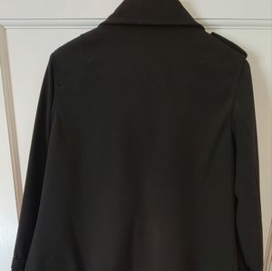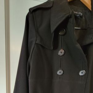 Black hip length swing coat for spring or fall.