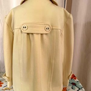 Short cream colored after 5 jacket. Front pockets. Lined with a pretty yellow fabric. Winter jacket.