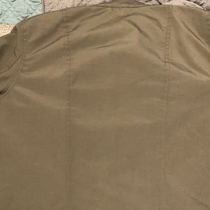 Jacket .. army green denim with multi color (almost looks knitted multi color) zipper front..light weight jacket .. Perfect condition.. med size