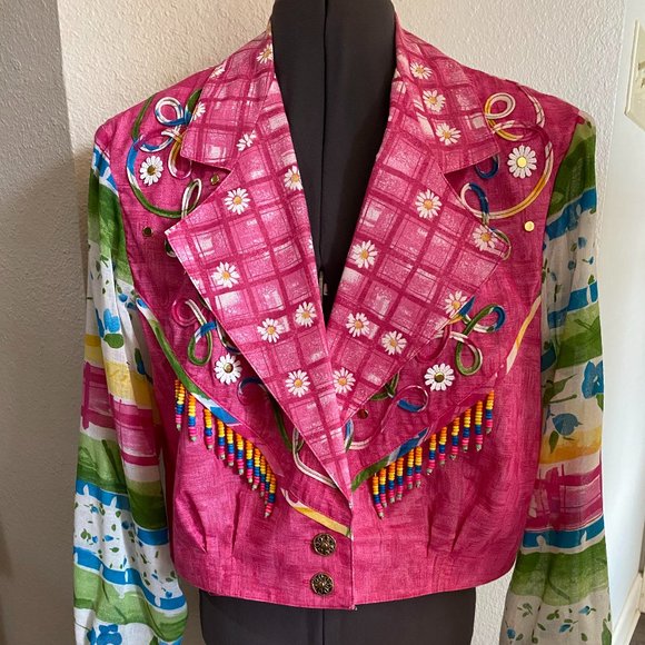 Howard Wolf Jacket, size 14. Pretty Pink, yellow green white, with beads.