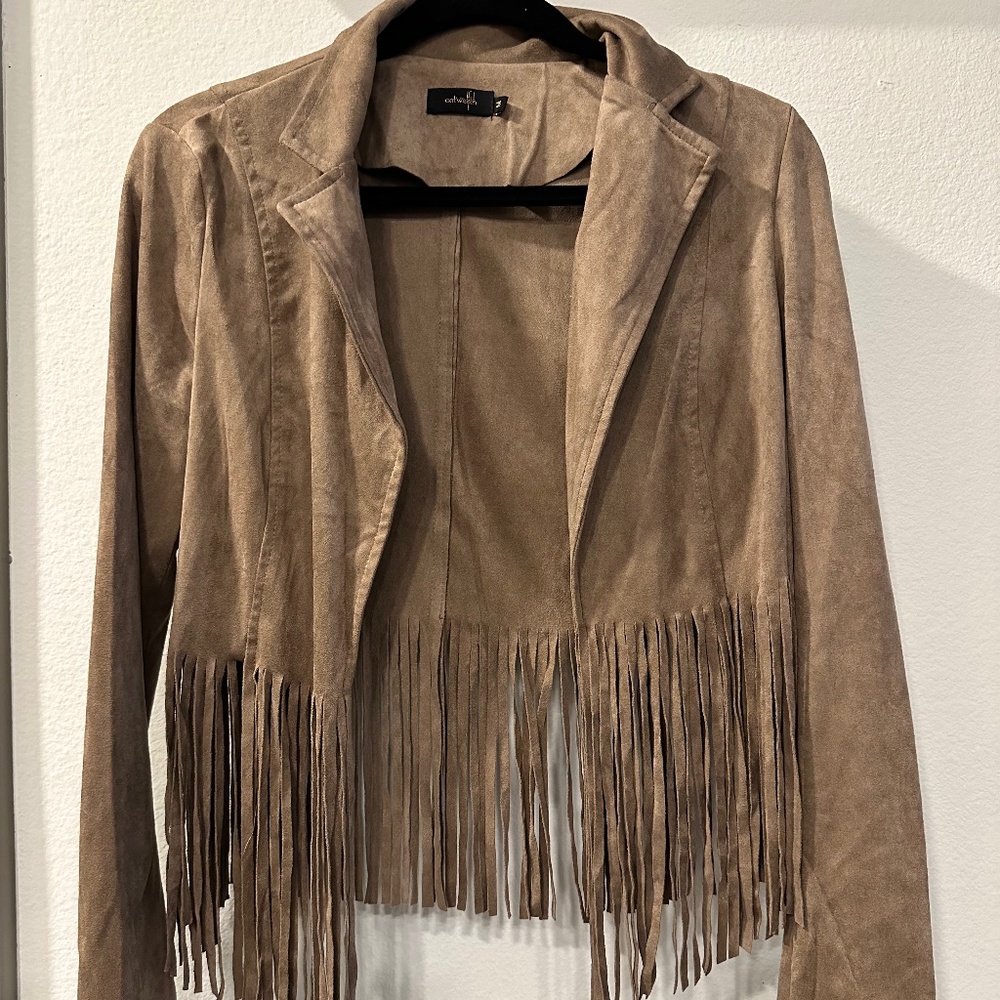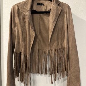Thin faux suede jacket with fringe. Work once. No fade in the suede.
