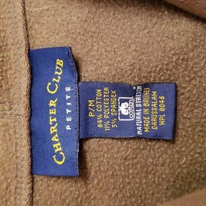 Army green sweat jacket. Has straight sleeves and side pockets. Gently used.