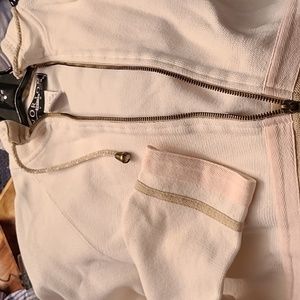 Cotton light jacket. Cream with beige and pink trim. Side pockets