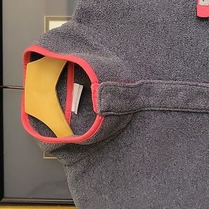 pullover. buttons. zipper pocket on front. no side pockets