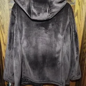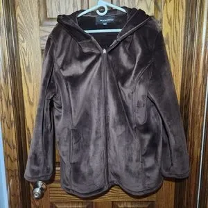 Brown soft waterproof bomber-luke jacket with zipper front closure and hood.