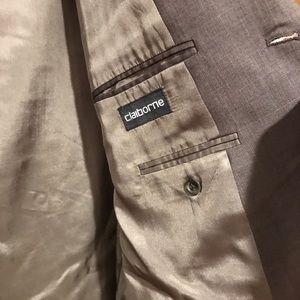 Claiborne mens jacket, grey, sz 48-40, 100 percent wool, 3 pockets outside, 3 pockets inside, lined, measurements pit to pit 23, shoulder to hem 34, sleeve 25. This is a beautiful jacket in great condition. Take it for only ten bucks, what a deal!