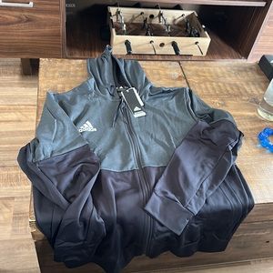 Adidas Men's full zip-up hoodie training jacket. Features: * AEROREADY absorbs moisture and makes you feel dry. * Hood with adjustable drawstring * 2 front pockets * adidas logo on the right chest * Material: 100% polyester.