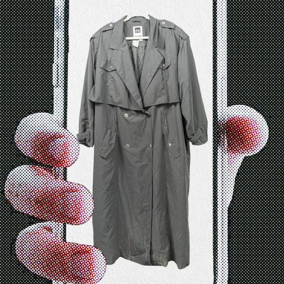 Grey Gray Second-Hand Cotton Long Jacket Trench Coat