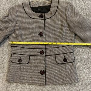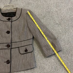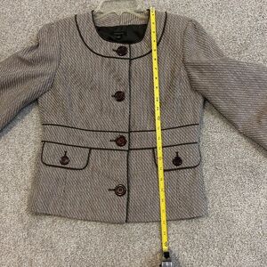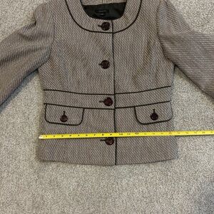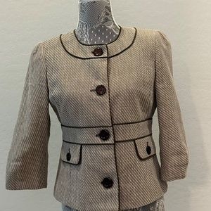 Cute jacket with 3/4 length sleeve. Hits at waist.