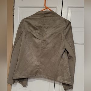 Is the material like a faux leather or suede? What is the pit-to-pit measurement? Thanks