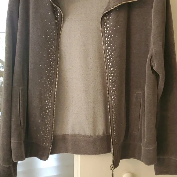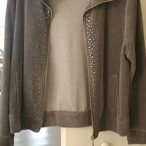 gray short light weight jacket with rhinestones
