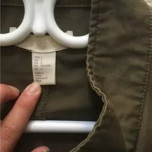 H&M jacket nice green color to it with cute design attach. It has strings at the bottom to tighten up the jacket to keep you more cozy and it’s comfortable and kept clean. Size large