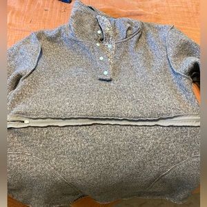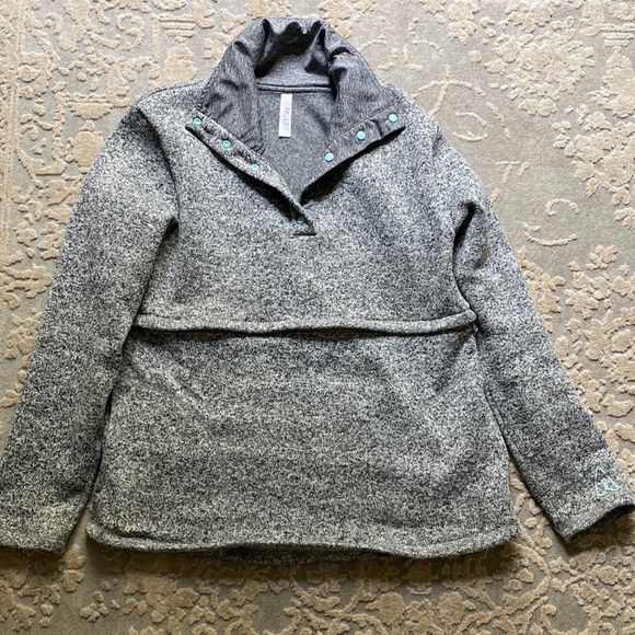 @danaft I added 2 pictures. One inside out. Yes, I wore this while baby wearing. It’s not as covered as the other sweatshirts they have for baby wearing but it works