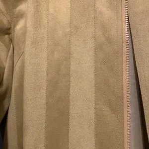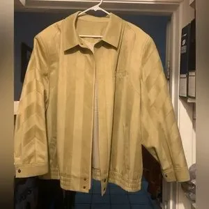 Men’s Vintage jacket. Pockets, lined with pockets, never worn. Beige color with 2 shades to create striped looked. Is a suede material on the outside. No tags but fits like a men 2x