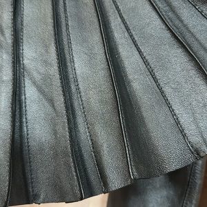 100% leather jacket (small) black pleated, v-neck, detailed closer