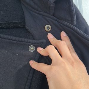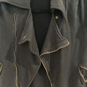 Soft Moto styled jacket. This jacket is super cozy! It can zip up in the middle and if you need more coverage on your chest you can button the lower flap.