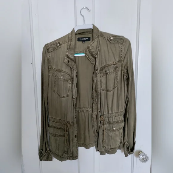 Max Jeans brand women's size XS jacket shirt. Army green color. In good used condition - worn a handful of times - no rips, nor stains, nor tears!!