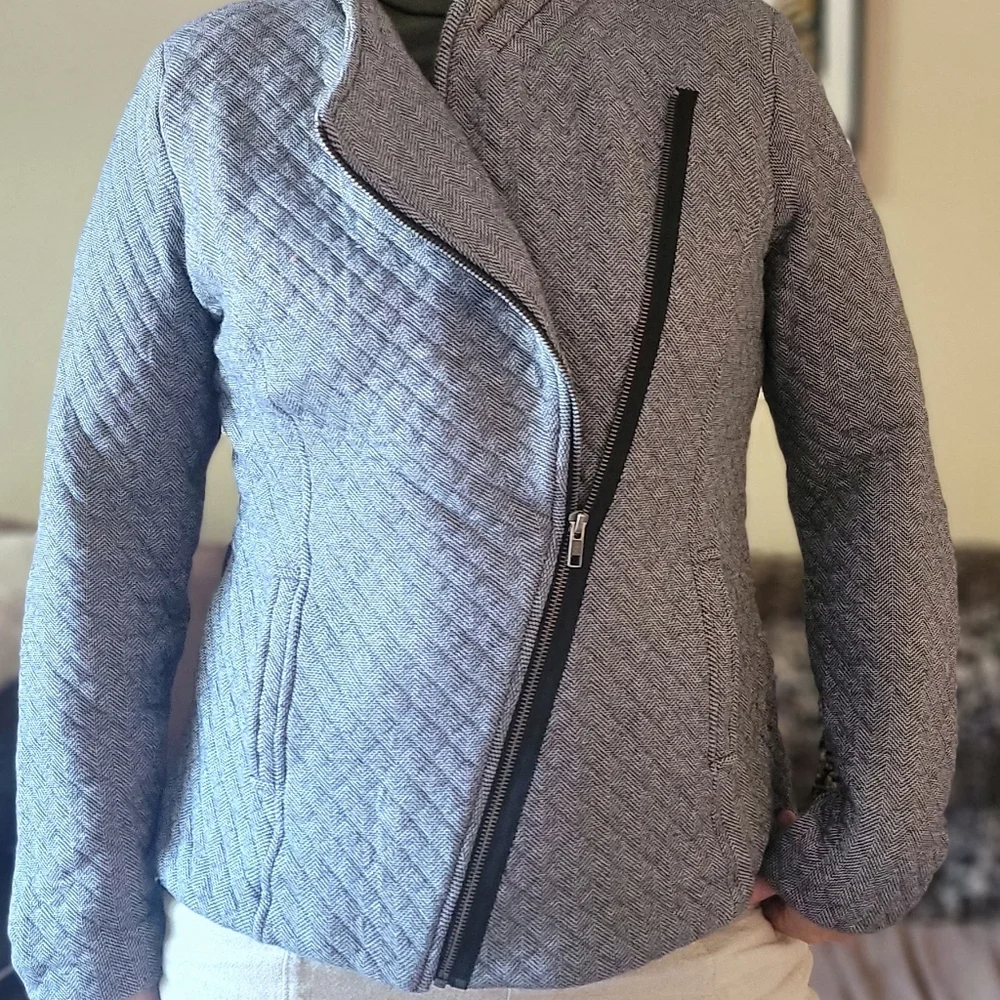 Cabi Women's Quilted Black and White Herringbone Jacket Medium
