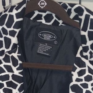 black jacket with printed accents on collar
