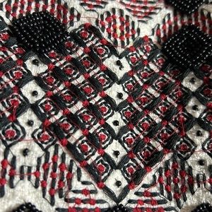 Sensational jacket with three eye/latch hidden closure.