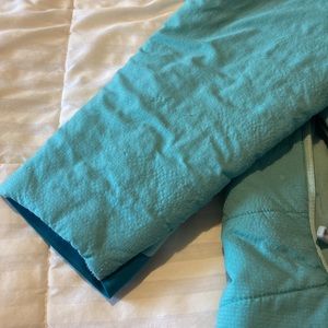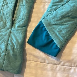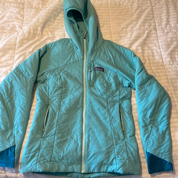 Teal zip up Patagonia jacket. Some pilling.