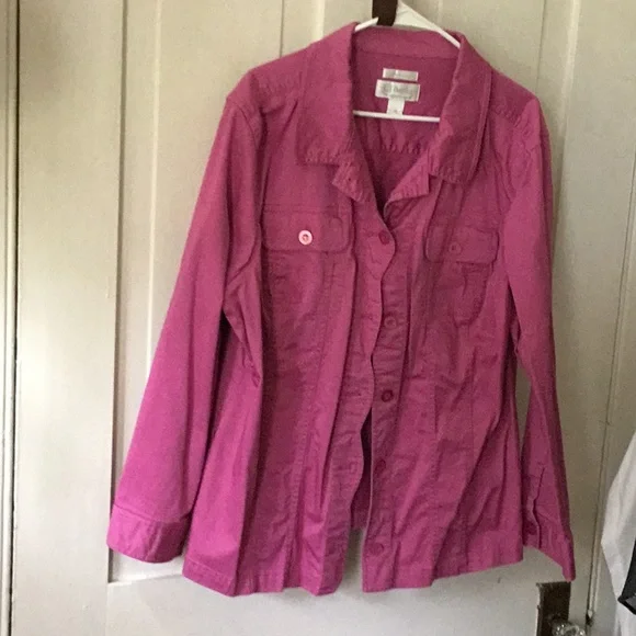 Long sleeve jacket CJ Banks size 3x two breast pockets front edge at buttons scalloped