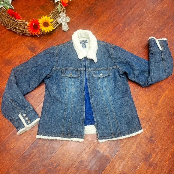 denim jacket with warm white collar