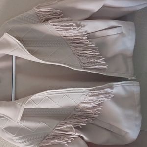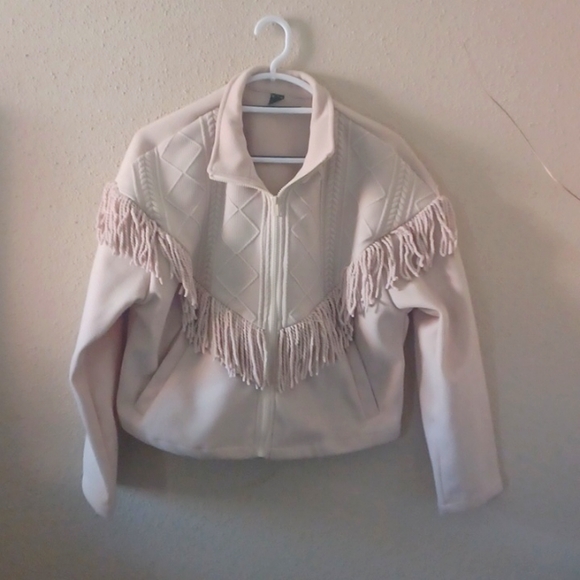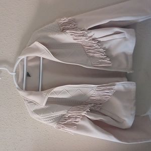 Brand new waist jacket with fringe decorations. It's light in weight and best worn during the fall.