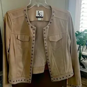 Jacket is the feel of suede, size 10 but fits more like an 8