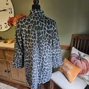 Trendy women's jacket, blue and grey leopard print.
