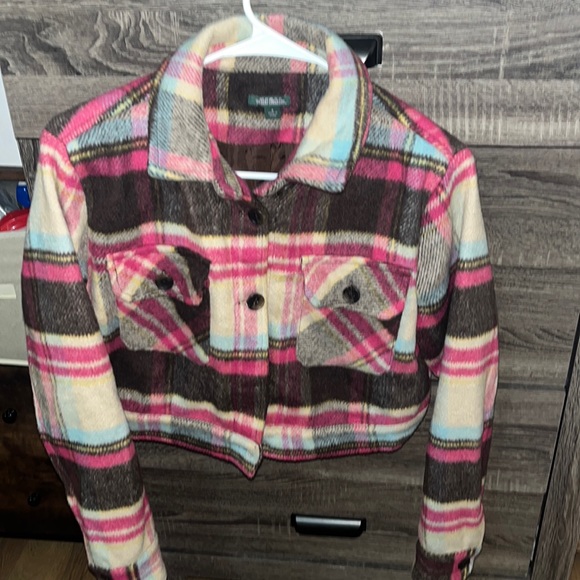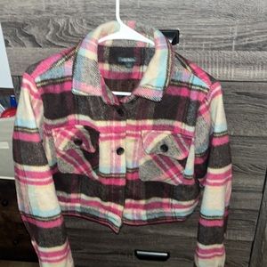 Cute women’s multi colored jacket can be dressed up or casual. No holes or rips in it