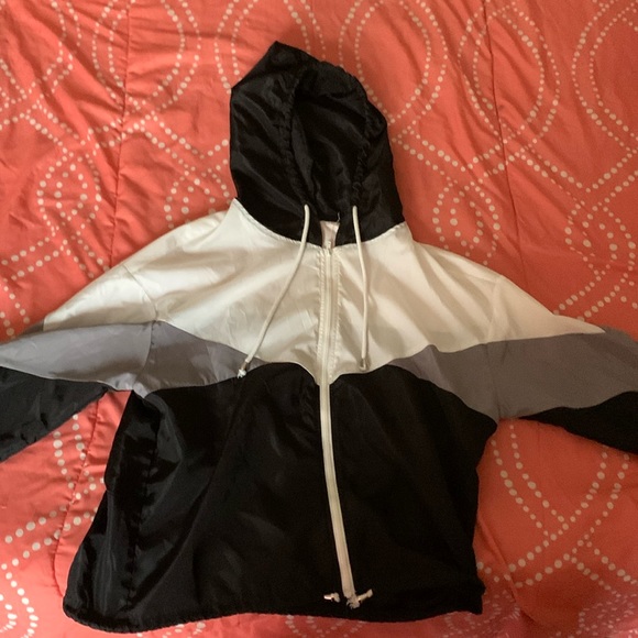 Good quality black white and gray windbreaker nice fit and goes with many things