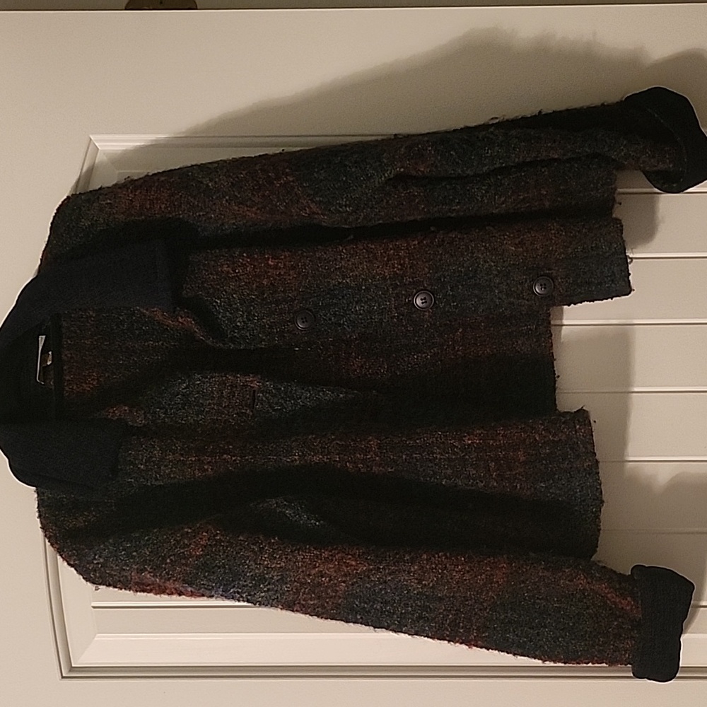 handcrafted in Ireland sweater jacket. blue red and green. note; this item is dry clean only. size med