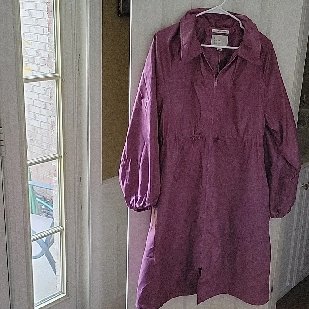 Brand new with tags. Target brand water resistant drawstring jacket. Zippers in front. Approx 42 inches long.