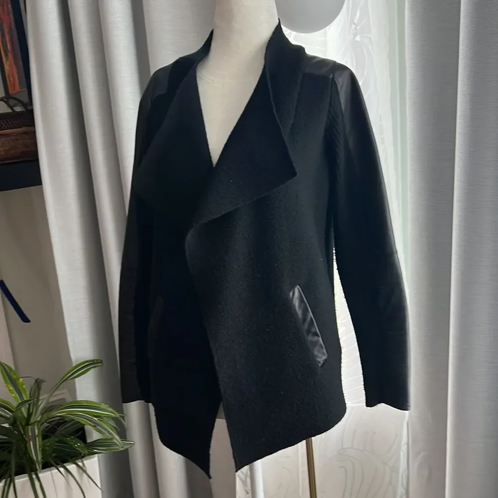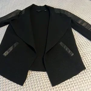 In good condition, wool and leather Ted Baker jacket . Open , no buttons.