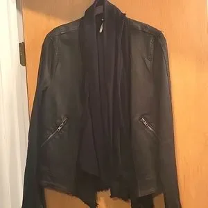 Free People Denim Jacket Stretch denim attached scarf