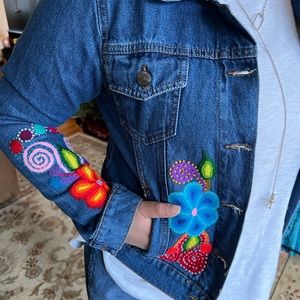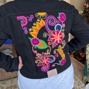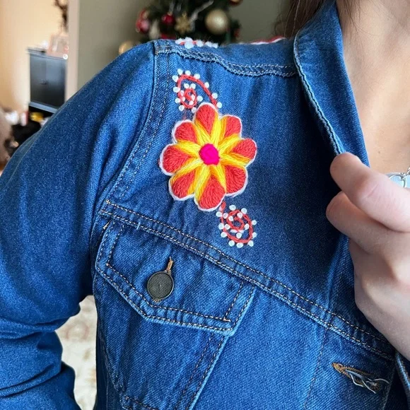 Very delicates handmade embroidered denim jacket. Every jacket has a unique flower design. I have small, medium and large.