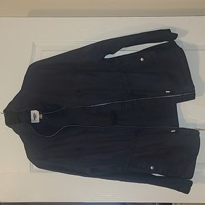 Gently worn jacket with zipper and front pockets also a drawstring waist